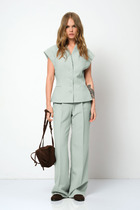 Брюки женскиеР46-50длинные, на притачном поясе с пятью шлёвками. Застежка в среднем шве на тесьму-молнию типа «гульфик» и по краю пояса на петлю и пуговицу. Передние части с имитацией боковых косых карманов. Задние части с талевыми выточками. Р52-56длинные, на притачном поясе, по боковым на резинке. Застежка в среднем шве на тесьму-молнию типа «гульфик» и по краю пояса на петлю и пуговицу.