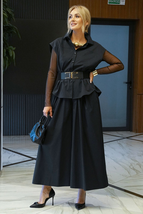 Состав: Блуза- ПЭ-98%; Спандекс-2%; Костюм- Вискоза-37%; ПЭ-60%; Эластан-3%;