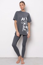 Комплект состоит из футболки с коротким рукавом свободного прилегания и брюк-лосин. Брюки–лосины с высокой линией талии. Эргономичный крой усиливает ощущение комфорта во время движений. Комплект уместен для занятий спортом, отдыха на природе, прогулок.