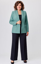 Костюм двухпредметный: состоящий из блузки и брюк. Блузка-туника А-силуэта, двойная с фигурным низом. Вырез горловины круглый, рукав летучая мышь.