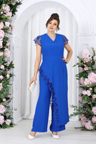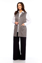 Жакет свободного силуэта с застежкой по переду на кнопки. Воротник отложной. По переду отрезные кокетки, накладные карманы с клапанами. По спинке кокетка и рельефы. Рукав двухшовный с притачной манжетой на кнопках. Низ жакета на притачном поясе.