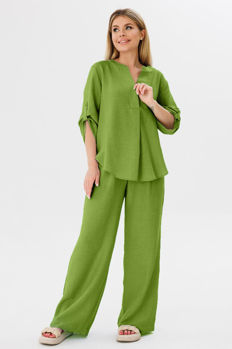 Блузка женская прямого силуэта с притачным рукавом. По переду V-образный вырез с притачной планкой и складкой. Рукав на пате. Низ фигурный.