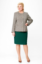 Жакет прямого силуэта, оснащен двухбортной застежкой на петли-пуговицы, что добавляет образу официальности. Детализированный дизайн включает нагрудную вытачку, переходящую в прорезной карман с клапаном на передней части, и фигурный рельеф на спинке с щлицей, обеспечивающий отличную посадку по фигуре. Рукав жакета двухшовный, подчеркивающий линии рук. Жакет на подкладке для дополнительного комфорта.