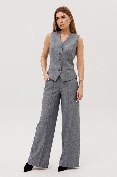 Жилет прилегающего силуэта, с V- образным вырезом, на подкладке. По переду рельефа карманы "листочки", застёжка на петли-пуговицы. По спинке вытачки.