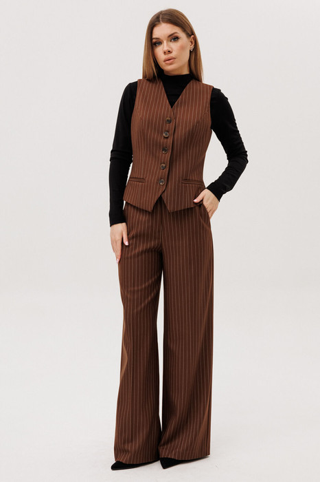 Элегантные женские брюки прямого кроя ,по переду на брючинах стрелки. Модель с высокой посадкой на притачном поясе обеспечивает идеальное прилегание. Спереди расположена практичная застежка на тесьму-молнию, добавляющая удобства при носке. Брюки укомплектованы функциональными боковыми карманами, что придает модели дополнительную практичность и удобство. Эта модель идеально подойдет как для офиса, так и для создания повседневных стильных образов.