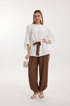 Свободный топ с U-вырезом изо льна с вискозой по косой