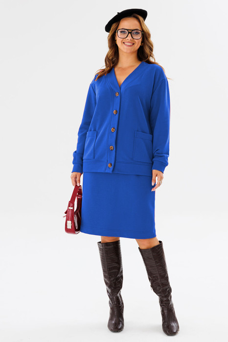 Шикарный трикотажный женский костюм  от бренда Anastasia, идеальный для любого случая. Этот костюм сочетает в себе элегантность и комфорт, что делает его подходящим как для деловых встреч или прогулок. Комплект состоит из кардигана и юбки. Кардиган прямого силуэта со спущенным плечом. По низу спинки и полочки идет отрезной пояс. Застежка- планка с пуговицами. По полочке идут накладные карманы. По низу рукава- манжет. Юбка зауженная к низу по спинке идет разрез, пояс отрезной на резинке.  Стильный костюм отлично подойдет для долгих прогулок или для работы, для офиса. Юбка -миди создает чувственный образ благодаря своей длине, придающей женственность и элегантность вашему образу.  Отдельный части костюма легко будут сочетаться с вещами из Вашего гардероба. Модель можно отнести к стилю спортивный кэжуал, оверсайз, спортивный шик. Костюм можно носить с кроссовками, высокими сапогами или ботинками. Обязательно добавьте наш бренд в избранное и следите за новинками, распродажами, скидками и акциями! Хороших покупок от «Анастасия». Длина  (по спинке):(50-54)- 56см, (56-60)-59 см. Длина рукава с манжетой: (50-54)-56см, (56-60)-58 см. Длина юбки: (50-54):-59см, (56-60)-62см.