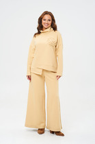 Комплект женский 2-х предметный (блузка, юбка). Отлично подойдет на любой тип фигуры, подчеркнет вашу женственность. Блузка из текстильной ткани прямого силуэта со спущенным плечом. Застежка- планка на петли и пуговицы. Воротник на отрезной стойке. Рукав одношовный, втачной, 3/4 длины с манжетой. В качестве декора- по манжете пуговицы, по низу блузки широкая подгибка с отстрочкой. Юбка расширенная к низу. Пояс на резинке. Длина блузки (50-54)- см, (56-60)- см . Длина рукава (50-60)-см. Длина юбки (50-60)-см.