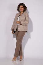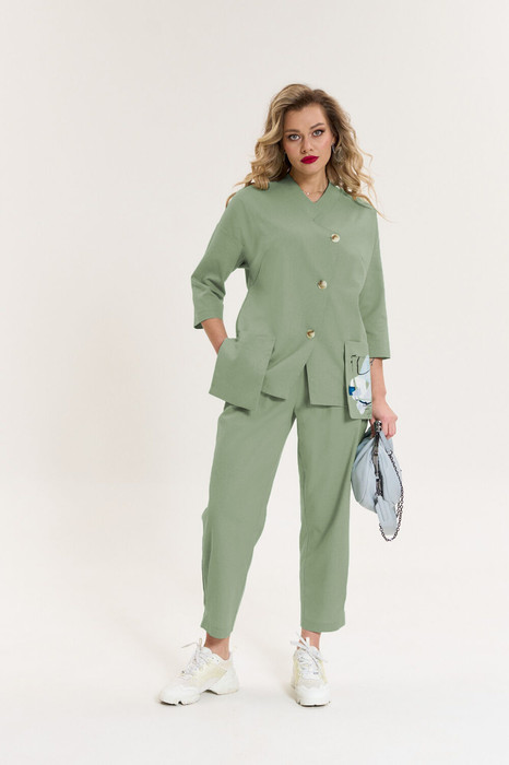 Женский брючный костюм — это идеальное сочетание стиля, комфорта и универсальности, которое станет вашим верным спутником как на деловых встречах, так и при повседневной носке. Изготовленный из высококачественной ткани, этот костюм обеспечивает легкость и приятные ощущения при носке. Костюм женский 2-хпредметный (жакет и брюки). Жакет из текстильной ткани прямого силуэта со спущенным плечом. По полочке идут грудовые выточки из бокового шва. Застежка ассиметричная. Воротник стойка. По спинке встречная складка. Рукав 3/4. По полочке идут отлетные накладные карманы с декором (термонаклейка). Брюки прямые, зауженные к низу за счет защипов. Пояс на резинке, по бокам карманы. Длина спинке:(48-52)-70см, (54-58)- 73см. Длина рукава:(48-58)-33см. Длина брюк (48-50) -93см, (52-58)-95см