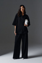 Комплект из костюмной ткани создан для тех, кто ценит комфорт и элегантность в каждой детали. В комплект входит блузка и штаны палаццо. Оверсайз крой придаёт костюму особый шарм и дает свободу движений. Высокая посадка и резинка по поясу подчёркивает талию и делает силуэт более изящным. Благодаря свободному крою костюм подойдёт для разных типов фигуры. Он подчеркнёт вашу индивидупльность. Блузка прямого силуэта, застежка на планку и пуговицы. Воротник на отрезной стойке. По полочке идет ассиметричный подрез со вставками из 2-х видов однотона и разрезом. Плечо спущенное, рукав длинный со вставками, на манжете. По спинке идет кокетка и встречная складка. Брюки полаццо , прямые с односторонней складкой и запахом по центру. По низу брюк широкая подгибка. Пояс на резинке . В качестве декора- брендированная металлическая нашивка по подрезу полочки. Длина по спинке (50-54) - 74 см, (56-60) - 76 см. Длина рукава (с манжетой): (50-54) - 57 см, (56-60)-59см. Длина брюк: (50-54) - 97 см, (56-60) - 98см