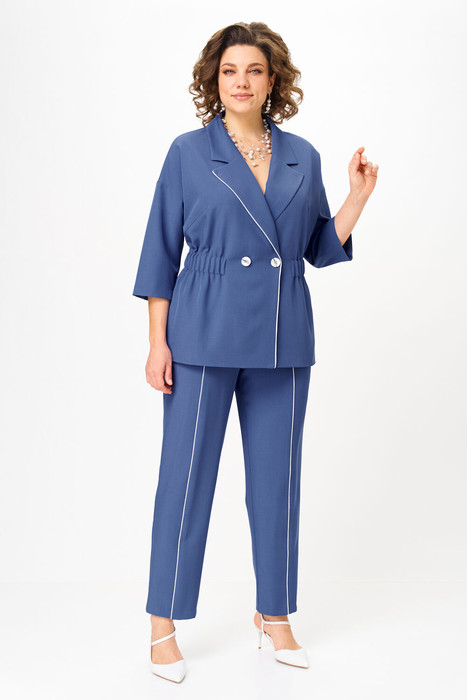 Стильный женский костюм от бренда Anastasia, идеальный для любого случая. Этот костюм сочетает в себе элегантность и комфорт, что делает его подходящим как для деловых встреч или прогулок. Комплект состоит из жакета и брюк. Костюм женский 2-хпредметный (жакет и брюки). Жакет на подкладке из текстильной ткани полуприлегающего силуэта со спущенным плечом. Приталивание по талии создается за счет кулиски с резинкой. По полочке идут грудовые выточки из бокового шва. Застежка двубортная. Воротник английского типа. По правому борту идет отделка- кант. По бокам карманы. По спинке средний шов. Рукав 3/4. Брюки, зауженные к низу. Пояс на резинке. По передней части – вставка кант. Стильный костюм отлично подойдет для долгих прогулок или для работы, для офиса. Брюки -клеш, пояс на резинке. По внутреннему срезу по низу идут разрезы. Отдельный части костюма легко будут сочетаться с вещами из Вашего гардероба. Модель можно отнести к стилю кэжуал. Костюм можно носить с туфлями, кроссовками или ботинками. Обязательно добавьте наш бренд в избранное и следите за новинками, распродажами, скидками и акциями! Хороших покупок от «Анастасия». Длина (по спинке):(50-52)- 69см, (54-58)-70 см, (60-64)-71см. Длина рукава: (50-64)- 32см. Длина брюк: (50-54):- 91см, (56-60)- 64см, (62-64)-96см