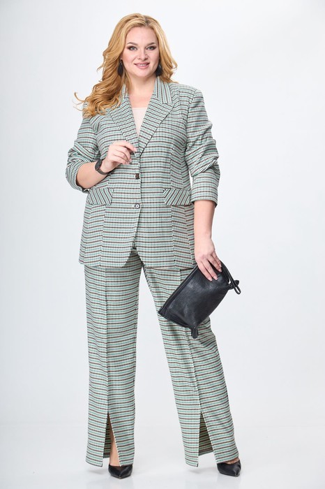 Костюм из смесовой принтованной ткани красивого бирюзового оттенка.Состоит:жакет на подкладке,брюки.