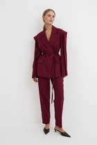 Этот костюм, состоящий из жакета с баской и юбки, станет отличным дополнением вашего гардероба. Жакет выполнен без подкладки, что придает ему легкость и комфорт в носке. Он застегивается на пуговицы спереди и комплектуется съемным ремнем, позволяющим подчеркнуть талию и создать идеальный силуэт.