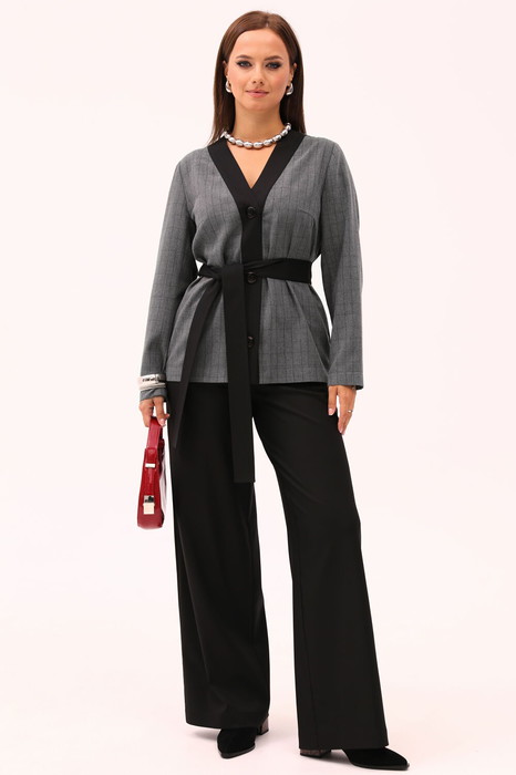 Деловой брючный комплект состоит из прямого жакета и широких брюк-палаццо. Он сочетает в себе сдержанность и элегантность. Этот универсальный комплект подойдет для офиса и работы, а также для повседневной носки и отдыха.