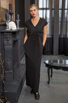 Широкие брюки с высокой посадкой, с поясом на резинке. В боковых швах имеются функциональные наклонные карманы.