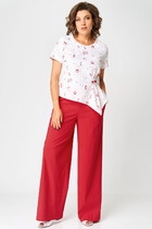 Элегантный брючный комплект, состоящий из оригинальной блузки и ярких брюк-палаццо. Блузка с элегантными защипами по талии подчеркнет Вашу женственность и романтичность. Комплект идеально подойдет для рабочих будней в летний период, а также для дружеских встреч и романтических прогулок.