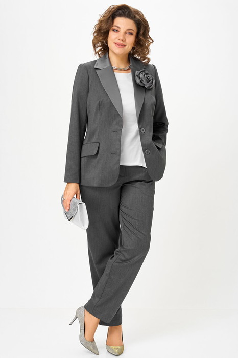 Классический комплект-тройка, состоящий из жакета, блузки и брюк, подчеркнет Вашу элегантность и женственность. Съемная брошь в виде цветка поможет в создании различных образов.