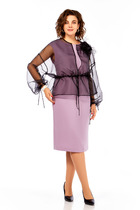 Жакет однобортный полуприталенного силуэта, на подкладке, с плечевыми накладками. Воротник пиджачного типа с отложными лацканами. По переду центральная застежка на петли и пуговицы и прорезные карманы с клапаном, талиевые вытачки и рельефы. Низ бортов закругленной формы. Спинка со средним швом и рельефами. Рукав втачной двухшовный длинный. Жилет прилегающего силуэта с центральной бортовой застежкой на петли и пуговицы, на подкладке. Вырез горловины V-образной формы. Перед - с талиевыми вытачками и прорезными карманами с листочкой. Спинка со средним швом и талиевыми вытачками. Брюки с высокой посадкой, слегка заужены книзу. Притачной пояс со шлевками и застежкой на молнию и пуговицу, по боковым - вставка из эластичной тесьмы. На задних половинках - вытачки. В боковых швах расположены функциональные косые карманы.