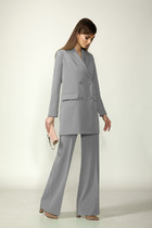 Этот 3-х предметный комплект состоит из жакета, корсетного топа и брюк. Жакет - настоящая жечужина в гардеробе. Небанальный вариант застёжки сбоку на лицевой стороне, и потайной пуговицей внутри изделия придаёт жакету характер, подчёркивает силуэт и линию талии. Жакет выгодно акцентирует фигуру, создавая утончённый и женственный образ. Благодаря декоративным рюшам из вуали, он легко станет центральным элементом образа. Карманы с клапанами. Корсетный топ с открытыми плечами — воплощение чувственной элегантности. Открытые плечи подчеркивают линию шеи и ключиц, а корсетный крой создает безупречный силуэт. Роскошный силуэт и акцентная баска делают его идеальным выбором для особенного вечера. Также топ отлично вписывается в повседневные образы. Брюки станут глотком свежего воздуха среди широких силуэтов и брюк палаццо. Их облегающий крой подчёркивает линию бедёр и тали, а затем изящно расклешается от колена.Такой фасон позволит скорректировать фигуру и подойдёт для строго дресс кода. Вертикальные линии по центру брючин вытягивают силуэт и удлиняют ноги. Застёжка классическая - молния и пуговица в цвет изделия.