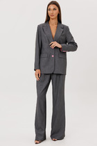 Комплект 2-х предметный. Состоит из жакета и брюк. Жакет без подкладки, швы обработаны кантом в цвет изделия. Рукав втачной, прямой, одношовный. Воротник шаль. Застежка на притачной пояс, дополнен съёмной пряжкой золотистого цвета. Брюки станут глотком свежего воздуха среди широких силуэтов и брюк палаццо. Их облегающий крой подчёркивает линию бедёр и тали, а затем изящно расклешается от колена.Такой фасон позволит скорректировать фигуру и подойдёт для строго дресс кода. Вертикальные линии по центру брючин вытягивают силуэт и удлиняют ноги. Застёжка классическая - молния и пуговица в цвет изделия.