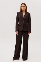 Комплект женский, состоящий из жакета и брюк. Жакет прямого силуэта, укороченный с воротником "шаль" двубортный. Изделие на подкладке. Брюки прямые, облегающие по бедрам и расширенные к низу, со стрелками.