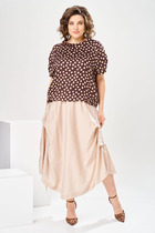 Комплект женский , состоящий из жилета и юбки. Жилет укороченный, прилегающего силуэта, двубортный с отложным воротником с лацканами, по переду и спинке вертикальные рельефы, по переду обманки-клапаны, изделие на подкладке. Юбка прямая, зауженная к низу, по переду разрез встык и имитация застёжки,по заднему полотнищу средний шов и молния, изделие на поясе, на подкладке, по переднему полотнищу боковые карманы со скосом.