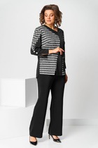 Комплект женский, состоящий из жакета и брюк-капри. Жакет прилегающего силуэта с застёжкой спереди на петли и пуговицы, с воротником отложным с лацканами, с карманами по переду, с втачным рукавом. Изделие на подкладке. Капри длиной за калено, узкие на поясе, с застёжкой спереди на молнию и пуговицы, с карманами, с разрезиками по низу боковых швов.