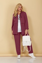 Комплект женский брючный спортивный,состоящий из джемпера и брюк. Джемпер свободгого покроя со спущенной проймой и рукавом на манжете, с застёжкой спереди на молнию, с воротником, с карманами по переду изделия. На манжете по низу изделия. Брюки прямые, расширенные к низу, на поясе с эластичной тесьмой, с карманами в боковых швах.