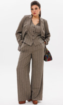 Женский нарядный двухпредметный костюм состоит из блузы и брюк с имитацией юбки спереди,выполнен из плательно-костюмной однотонной ткани с блестящим напылением.