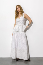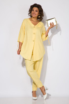 Женский нарядный двухпредметный костюм состоит из блузы и брюк с имитацией юбки спереди,выполнен из плательно-костюмной однотонной ткани с блестящим напылением.