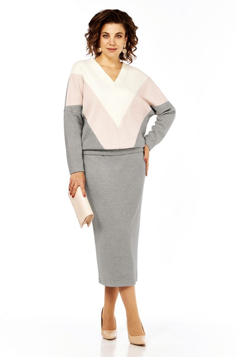 Костюм женский двухпредметный состоит из свободного джемпера и длиной юбки,выполнен из  трикотажного полотна под вельвет в мелкий рубчик 3 цветов.