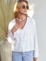 Укороченная свободная блузка с завязками и с V-вырезом изо льна с вискозой