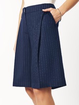 Брюки двойные широкие , соединены между собой притачным поясом с резинкой по кругу. Верхние брюки широкие длиннее нижних, выполнены из гладкого однотонного шифона, с высокими разрезами по бокам . Нижние брюки зауженные к низу , выполнены из гладкой струящейся плательно-костюмной ткани.
