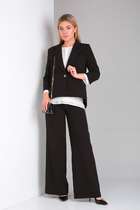 Жилет полуприлегающего силуэта, на подкладке. Застежка однобортная на две петли и пуговицы. Вырез V-образный, воротник пиджачного типа с лацканами. По полочке вытачки. Без рукавов. На полочках на уровне бедер прорезные карманы в рамку. Спинка со средним швом.