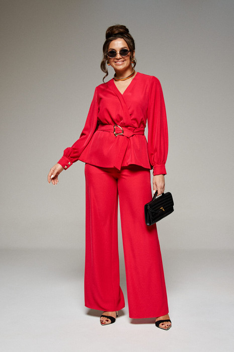 Деловой и нарядный костюм, состоящий из двух предметов: блузки и брюк, идеально подходит для выхода и городских будней, выполнен из ткани «французский креп», которая отличается особой мягкостью и изысканностью, красиво струится и имеет легкий стрейч.