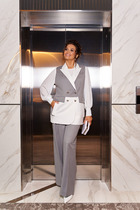 Брючный костюм из изысканного полотна в полоску идеально подходит для торжественных случаев и не только. Оба изделия можно смело комбинировать по отдельности с другими вещами Вашего гардероба.