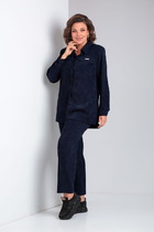 Комплект 2-х предметный состоит из жакета и и брюк. Жакет женский удлиненный, из текстильной ткани, на подкладке, полуприлегающего силуэта с центральной бортовой застежкой на пуговицы до линии перегиба лацкана. Спереди рельефные швы от плечевого шва, отрезной бочок и карман с клапаном. Спинка с рельефами от плечевого шва. Рукав втачной, двухшовный, по низу рукава обработана шлица на петли-пуговицы. Воротник пиджачного типа. Длина по спинке 66 см, длина рукава 62 см. Брюки-палаццо,средней ширины,из плотной текстильной ткани, выполнены с карманами с отрезным бочком в боковом шве. Пояс притачной, застёжка на молнию. По задним половинкам обработаны вытачки. Длина по боковому шву 108 см.
