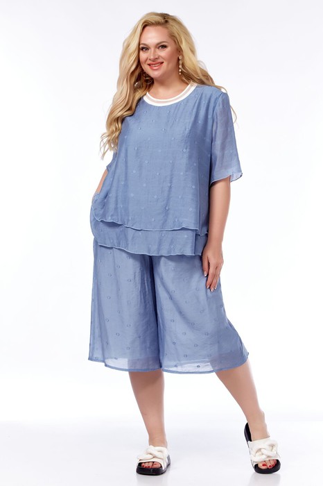 Костюм женский свободного силуэта.Блузка А-образная, двойная. Шорты на подкладке, в боковых швах карманы.