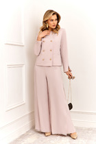 Костюм женский 2-УХ предметный. Платье и блузка. Платье длинное на брителях. Блузка с центральнобортовой застежкой на петли и пуговици, рукав втачной с манжетом. Перед украшен цветами.