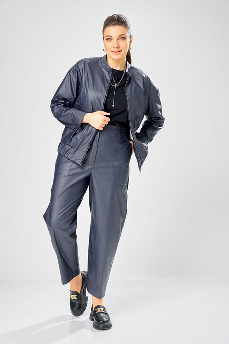 Брюки зауженные к низу, по передним половинкам накладные карманы, застежка по линии банта на молнию, на задних половинках отрезная кокетка и накладные карманы. Верх брюк на пояса с застежкой на кнопки.