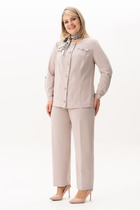 Брюки зауженные к низу, по передним половинкам накладные карманы, застежка по линии банта на молнию, на задних половинках отрезная кокетка и накладные карманы. Верх брюк на пояса с застежкой на кнопки.