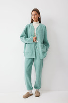 Стильный женский костюм, состоит из блузона и брюк. Костюм выполнен в спортивном стиле.