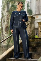 Стильный женский костюм, состоит из блузона и брюк. Костюм выполнен в спортивном стиле.