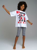 Костюм из джинсового футера с лайкрой для мальчиков толстовка + брюки. Толстовка с капюшоном со вдетым шнурком, принт спереди в виде силуэта лисы и надписей, по низу и на рукавах манжеты. Брюки с резинкой и шнурком в поясе, по бокам карманы, принт в виде надписей. Размеры от 32 до 40. Внимание, данный товар не продается в розницу!