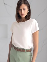 Костюм женский с юбкой. Кофта прямого силуэта с застежкой на тесьму-молнию по горловине переда. Линия плеча спущенная, рукав втачной одношовный с притачным манжетом по низу. Воротник-стойка. По низу кулиса с резинкой на фиксаторах. В качестве отделки используется отделочный кант и фурнитура. Юбка зауженная в низу, на переднем и заднем полотнище средний шов заканчивающийся шлицей. Верхний срез обработан поясом с резинкой. В качестве отделки используется отделочный кант и фурнитура.