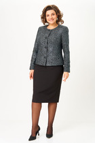 Комплект женский состоит из блузона и сарафана. Сарафан полуприлегающего силуэта, на бретелях, со средним швом на спинке, который заканчивается разрезом. По переду нагрудные вытачки, в боковых швах обработаны карманы. Блузон свободного кроя со спущенной линией плеча. Без застежки. Воротник стояче-отложной с отрезной стойкой. Внутренние срезы окантованы.