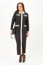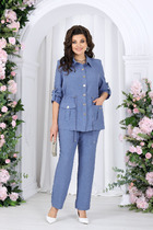 Комплект брючный состоит из кофты, топа и брюк. Кофта свободного кроя со спущенной линией плеча, на запах. Рукав втачной одношовный с манжетом по низу. Капюшон цельнокройный с передом по низу изделия, притачной пояс. Топ полуприлегающего силуэта на бретелях. по переду нагрудные вытачки. Бретели регулируются по длине. Брюки расширенные к низу, карманы в боковом шве, по переду линии притачивания, заложены складки. Верхний срез обработан поясом с резинкой.
