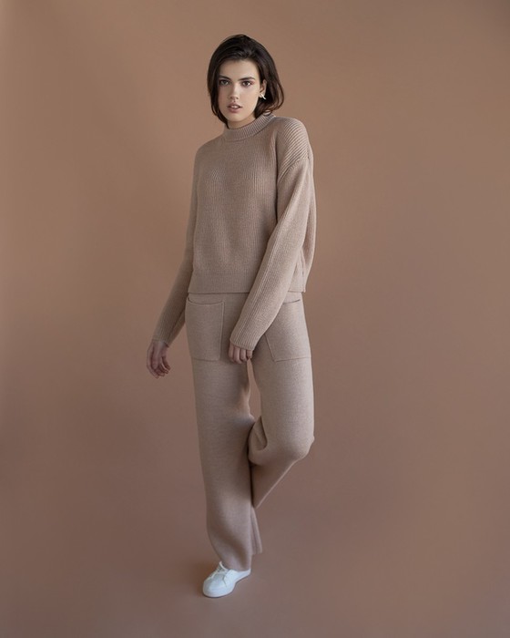Совместные закупки Екатеринбург Женская одежда Костюмы, комплекты — Костюм: джемпер и брюки с накладными карманами, бежевый