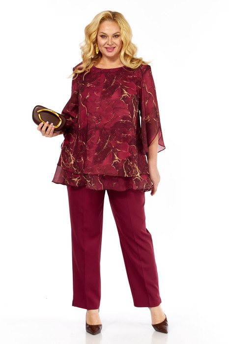 Идеальное решение на летний период, 2-х предметный комплект, состоит из блузы и брюк. Изделие позволит чувствовать себя ярко и уверенно. Воздушная блуза, свободного кроя, выполнена из принтованного шифона, что придает уникальность стилю своими красками. На полочке нагрудные вытачки, вырез горловины аккуратной округлой формы. Рукав втачной, свободный. Блуза на подкладке. Брюки слегка зауженные к низу. Пояс притачной, частично на резинке.