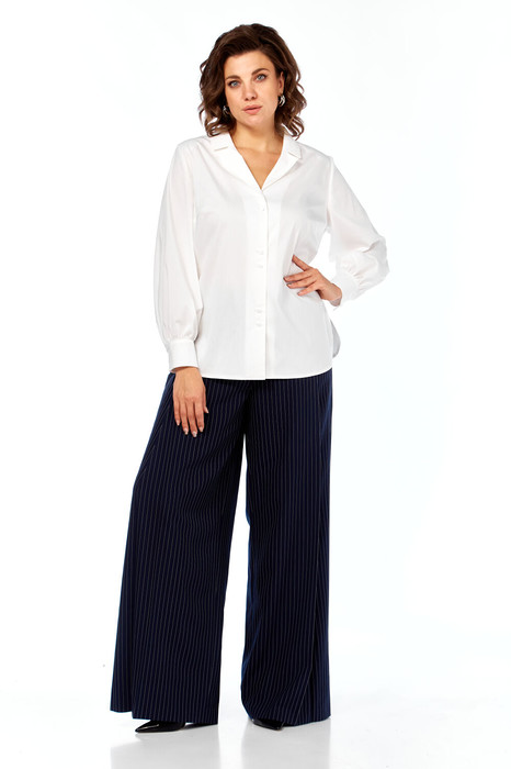 Комплект женский брючный 2-х предметный. Прекрасный вариант для визитов в офис, а так же в место, где уместен деловой стиль. Модель полуприлегающего силуэта с застежкой спереди на пуговицы. Воротник аккуратный отложной. Рукав втачной, по низу оформлен складками и притачной манжетой, застегивающейся на пуговицы. В боковых швах скругленные разрезы. Спинка с вертикальными выточками. Невероятно комфортные, элегантные брюки-палаццо, образ в котором будет привлекать к себе внимание окружающих. Идеально подходит как для офиса, так и для вечернего выхода. Брюки свободные. По переду заложены складки, в боковых швах расположены боковые карманы, застежка-молния. Пояс притачной, сзади на резинке, это обеспечивает комфортную посадку. Широкий крой палаццо добавляет образу легкость и непринужденность, стрелки визуально удлиняют силуэт.